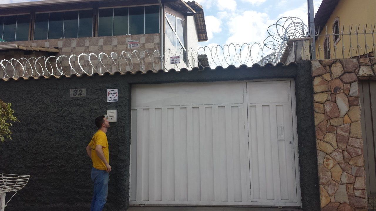 Sistema de proteção perimetral composta por um eletrificador de choque pulsante, bateria “no break”, sirene, hastes de ferro galvanizadas de 4 ou 6 fios, arame de aço inox e placas de advertência.